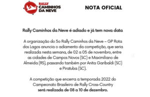 Rally Caminhos da Neve é adiado e já tem nova data: 08 a 10 de dezembro