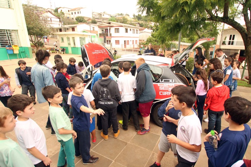 Encontro com competidores, corte e carros do rally, encantam crianças em escolas públicas do município